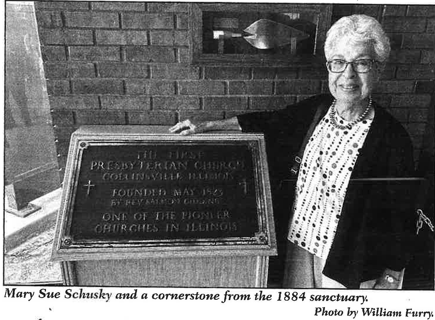 We received a wonderful letter from Mary Sue Schusky, a member of First United Presbyterian Church, enclosed with a story she wrote for Illinois Heritage. We felt we should share the beautiful reflection of history with Rev. Salmon Giddings and the long-time community connection of First United Presbyterian Church, Collinsville, Illinois.