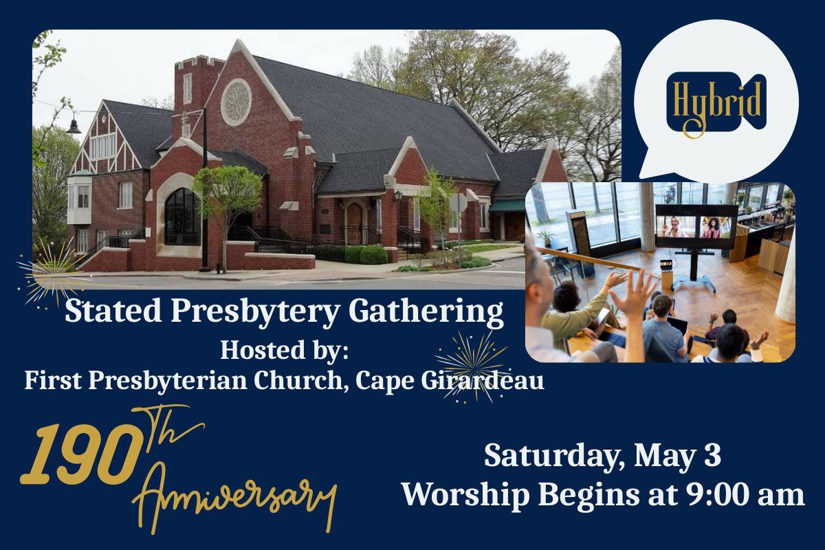 STATED PRESBYTERY GATHERING (Hybrid) Registration for Saturday, May 3, 2025TheĀ Gathering Will Open in Worship at 9:00 am On YouTube (Linked Here) Zoom Gathering Link will go live at 9:55 am Meeting Opens in Education Hour at 10:15 am
