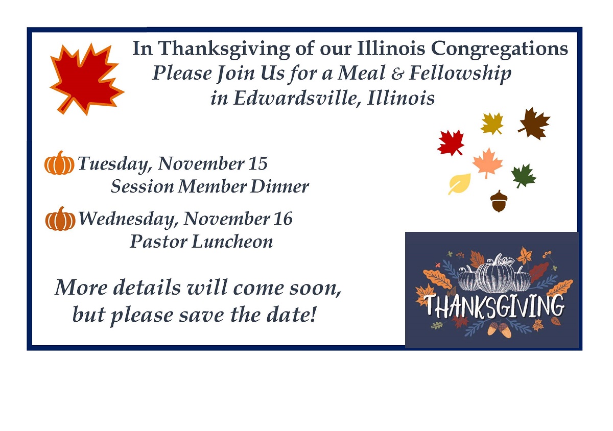 Presbytery Staff will travel to Edwardsville, Illinois Tuesday, November 15 & Wednesday, November 16 Details coming soon!